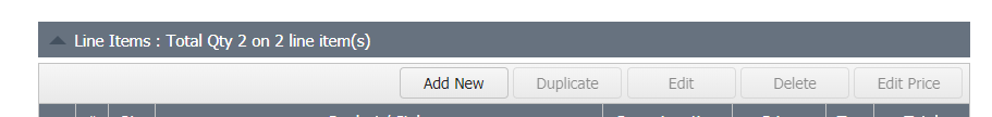 - To use either the Duplicate, Edit, Delete or Edit Price buttons, click on a line and these buttons will be enabled.