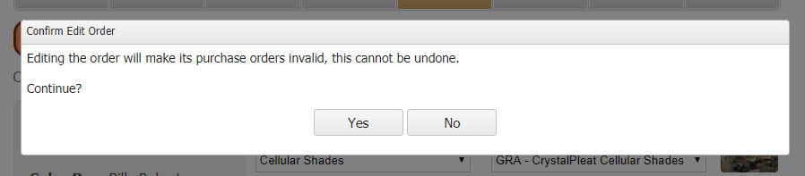 - If you click No, no changes will be made to the order