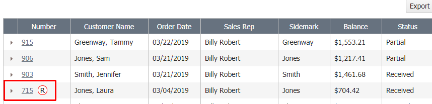- All Orders requiring reprocessing will be marked with the symbol shown below and will be marked with a temporary status of Received.