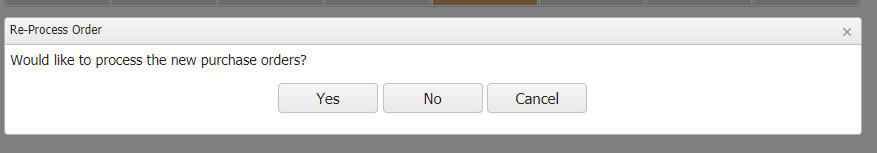 - Clicking Re-process will make existing Purchase Order(s) invalid and send the new Purchase Order(s) to the vendor