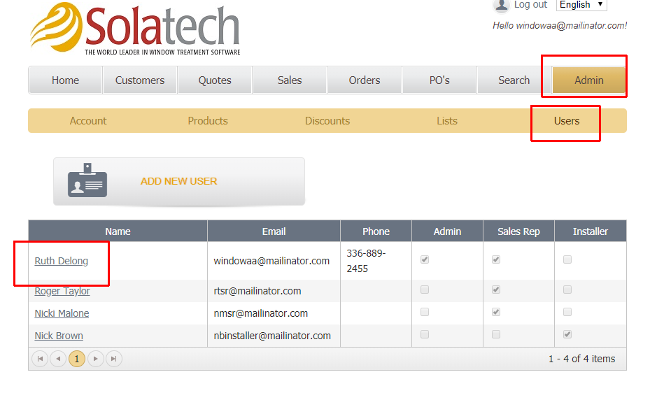 - Click on the appropriate user
