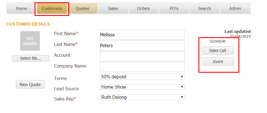 - Customer address will auto populate with the values found in the customer record.