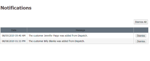 - The customer history will also contain an entry that The customer was added from Dispatch
