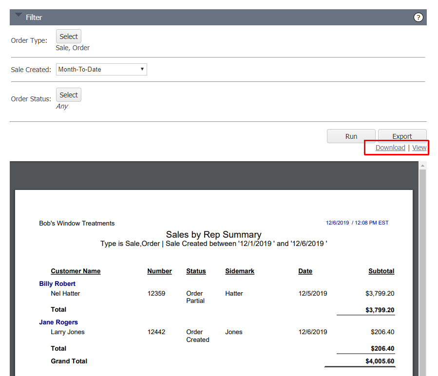 - If logged in as an Account Administrator, you will see sales for all of your reps automatically